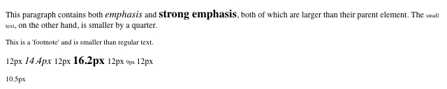 emphasis</strong>, both of which are larger than their parent element.